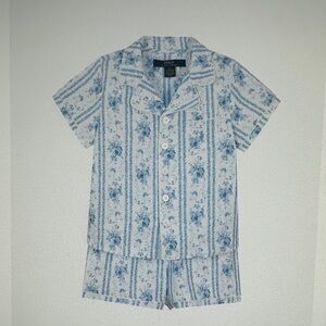 These charming kids pajamas feature a delightful floral pattern in soothing blue tones. Perfect for a cozy night's sleep.