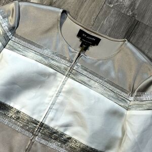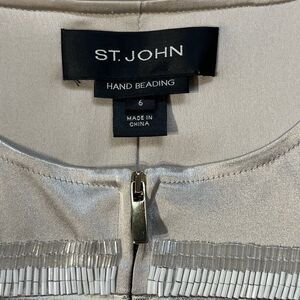St. John Women Size 6 Limestone White Gold Hand Beaded Shimmer Silk Lined Jacket