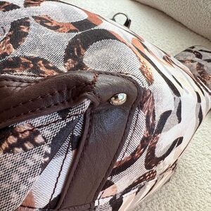 Authentic Coach zebra/leopard print signature tote featuring bold animal-inspired canvas with leather trim and polished silver-tone hardware.
