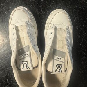 Elegant sneakers with signature Louis Vuitton design. Includes branded dust bags and box.
