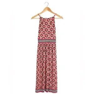 New York & Company Size 4 Women's Medium Halter A Line Coral Patterned Dress.