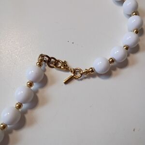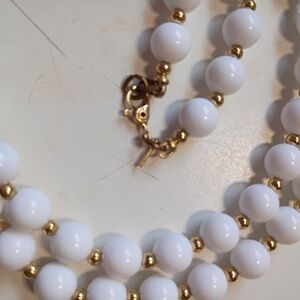 80s Signed Monet White and Gold Beaded Necklace