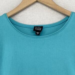 EILEEN FISHER Top XL Cotton Interlock Jersey Crewneck Short Sleeve Basic Blue