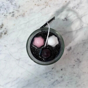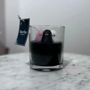 TikTok viral Martha Stewart ghost candle with white, black and pink ghost and silver glitter top