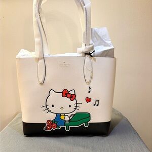 Stylish Kate Spade tote with Hello Kitty design. Cream and black colors. Ideal for everyday use.