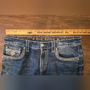 Rock Revival Casey Straight Leg Jeans Embroidered Mens 36x32 Thick Stitch