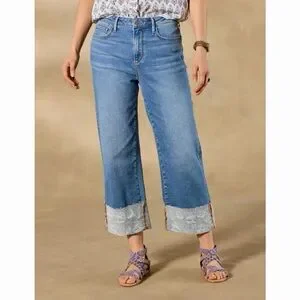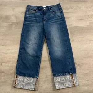 Driftwood Charlee Cuff Jeans Size 28 Floral Embroidered Raw Hem Blue. Great pre-owned condition. Measurements taken Flat/ approximate: Waist 15”, Hips 19, Rise 11”, Inseam 30” uncuffed, 25” cuffed, Leg Opening 9.5”. Smoke free home. Weighs 2lbs for shipping b