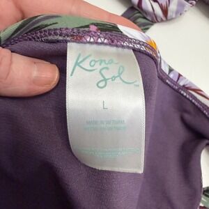 Kona Sol Bikini Set Large Purple Floral Halter Front Tie Two Piece