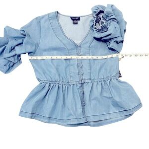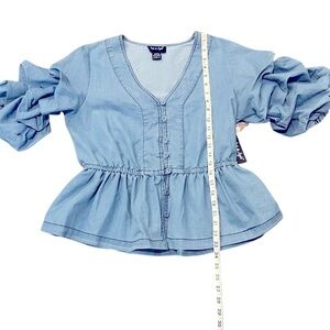 Step in Style Women Chambray Denim Shirt Puff Sleeve Size:Medium