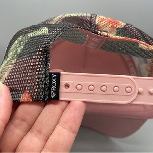 Chic Roxy cap with a bold logo. Pink front and white top. Mesh back for breathability.