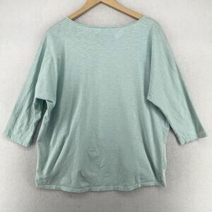 EILEEN FISHER Top L Slub Organic Cotton Jersey Scoop Neck Dolman Sleeve Blue