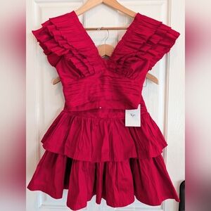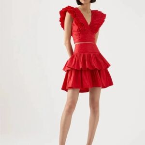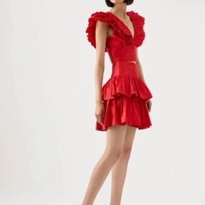 NWT- Aje Rhythmic Frill Bodice & Tiered Mini Skirt Set- Red