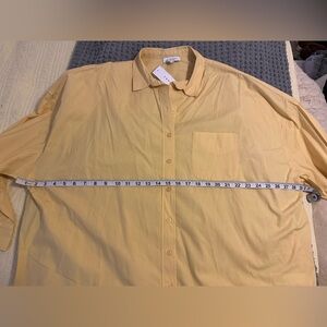 Chic yellow blouse with button-up design. Versatile for any occasion.