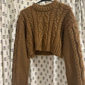 Cozy cable knit design. Cropped fit. Perfect for layering.