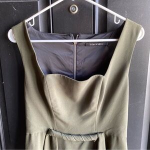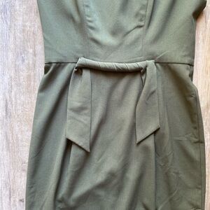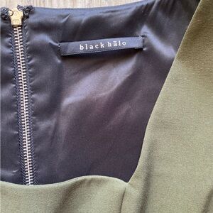 Black Halo Olive Green Square Neck Sheath Dress Twisted Front Waist Detail Size 8