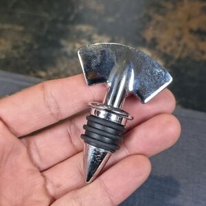 Design: A sleek, conical-shaped stopper made of polished chrome-plated metal with a tiered black rubber ring. This is a classic T-Handle Decanter Stopper style.