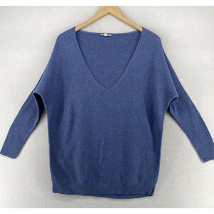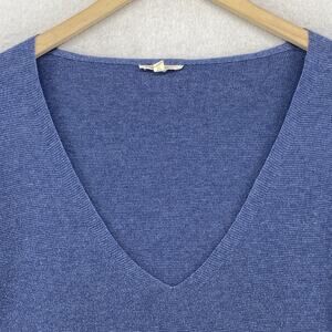 EILEEN FISHER Sweater S Organic Cotton Tunic Deep V-Neck Dolman Sleeve Blue