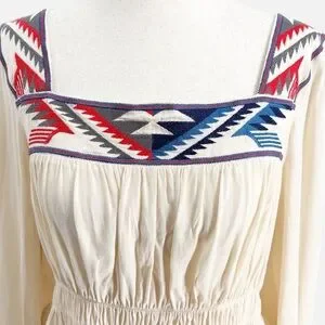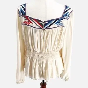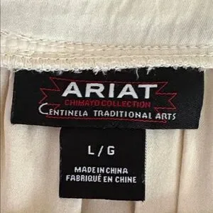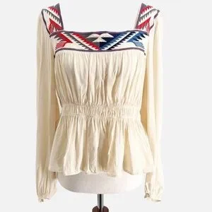 Ariat Chimayo Jacquard Embroidered Peplum Top in Buttercream - Size Large. Excellent, like new condition. It was new without tags but had a spot on the sleeve. I treated it, washed the top, hung it to dry and steamed it. Good as new! 100% rayon