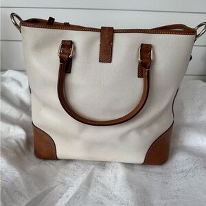 Dooney & Bourke Off White and Brown Leather Shelby Shopper Tote