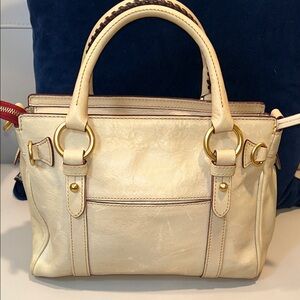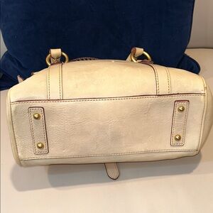 Chic and versatile satchel by Dooney & Bourke. Features a stylish tan exterior with elegant gold hardware. Perfect for everyday use.