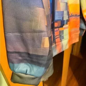 Elevate your style with this abstract multicolor V-neck sweater. Perfect for adding a splash of color to your wardrobe. Medium weight good for fall-winter. New.