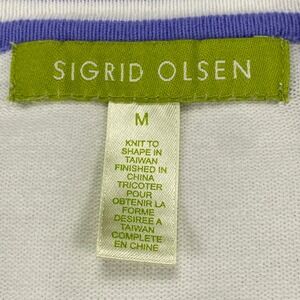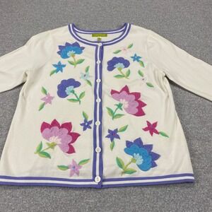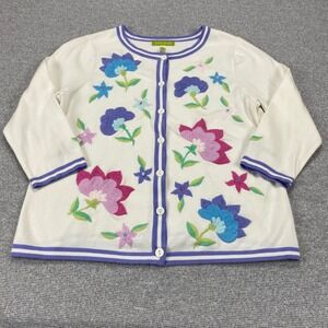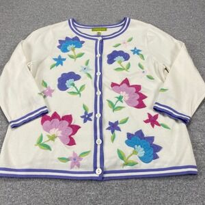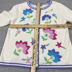 Sigrid Olsen Womens White Floral Embroidered Cardigan Sweater 3/4 Sleeve Size M