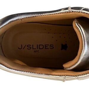 J SLIDES Women’s Leather Silver Round Toe Platform Sneaker Sz 8.5