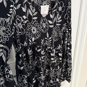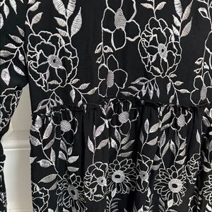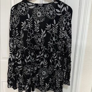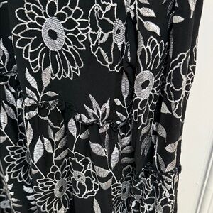 NWT Karen Kane Black/White Embroidered Blouse Babydoll 100% Rayon Size L