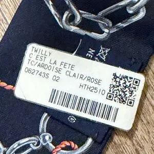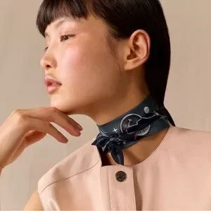 Brand new with tag C’est La Fete twilly pair of two twillies. Ardoise Clair / Rose Pâle / Bleu Marine colorway. 100% silk. Designed by Daiske Nomura. Comes with original box.