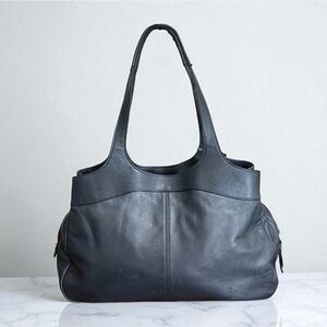 Style tags: authentic classic designer leather timeless blue slate leather shoulder handbag purse