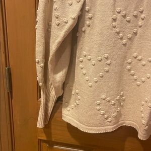 Chic cream sweatshirt with heart texture. Stylish and cozy. Perfect for casual outings.