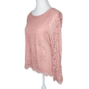 Adrienne Vittadini Dusty Pink Bell Sleeve Eyelet / Lace Top Size Small