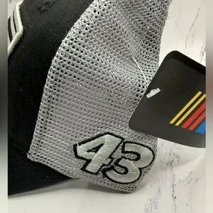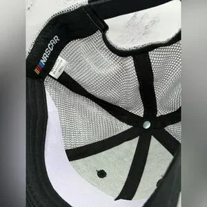 Sleek NASCAR cap with black and gray design. Mesh interior for comfort.