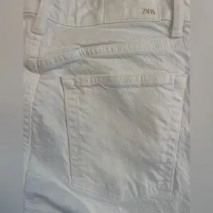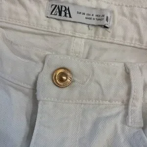 Zara White jeans high-rise wide leg copper colored hardware size 4 denim