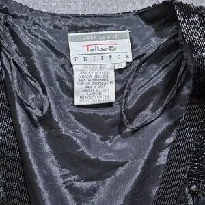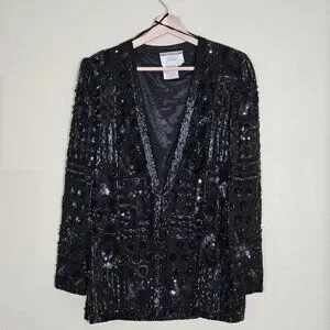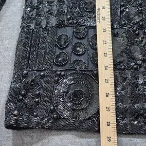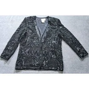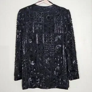 Joan Leslie Talbots Jacket Womens L Petite Black Top Sequins Beads Silk LS Vtg