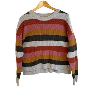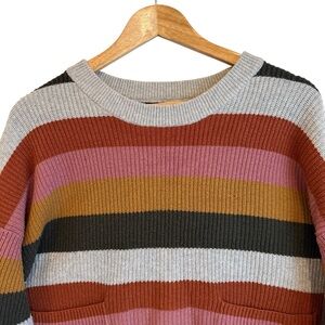 In excellent condition. Madewell Patch Pocket Pullover Sweater in Walton Stripe. Knitted from favorite yarn, this striped crewneck sweater has an easy, boxy fit and a high-low hem made for half-tucking. Maybe the best part? Those cute retro patch pockets.