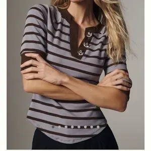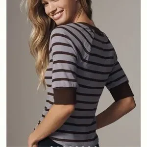 This Anthropologie Half Sleeve Henley Striped Top Tee is so cute and great for any occasion.