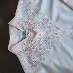 VINTAGE Pastel Pink Embroidered Collar Blouse 12