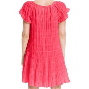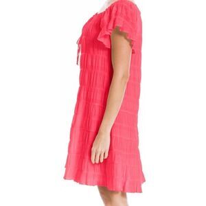 New with tags, Simple patterns decorate a short tiered dress with short flutter sleeves for a casual chic look.