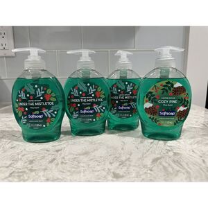Lot Of 4 limited edition SOFTSOAP (1)Cozy Pine(3)Under the Mistletoe PINE SCENTED liquid HAND SOAPS 7.5 Oz each.