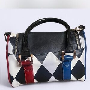 Justice has a bad side! This mini barrel bag is inspired by Suicide Squad's Harley Quinn. Featuring gold hardware, a HAHAHA gusset print, dual color pipes and stripes, you'll feel just like Daddy's Little Monster. No CB STRAP- Good condition