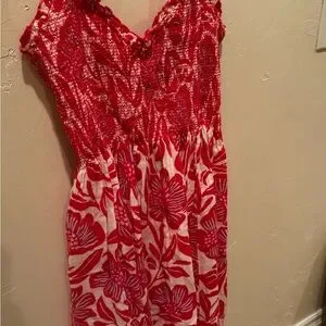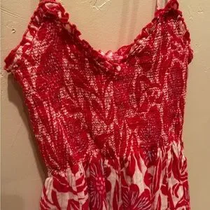 Features: Soft cotton fabrication, smocked bodice, scoop-neckline with ruffle trim, sleeveless silhouette with thin fixed shoulder straps