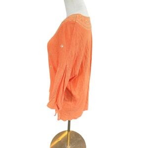 J. Jill Love Linen Orange Embroidered Sequin Top Womens Medium 3/4 Sleeve Tee
