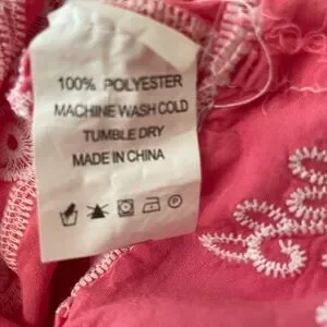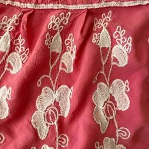 Charming pink top with intricate white embroidery. Perfect for adding a touch of elegance to any outfit. PTP 19 and length 24