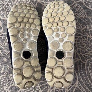 These are in good condition, mostly showing wear on the inside, logo/insert is fading. If you add insoles or flat socks, they would look much nicer. Not much wear on the outside that's noticable. I freshly washed these before listing. Still some life left in these stylish casual shoe. Very comfortable. Navy blue color.
