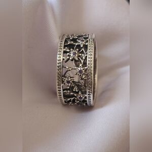 Pandora Sterling Silver Floral Ring Clear And Purple Stones