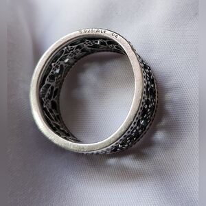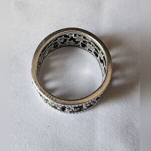 This exquisite silver floral ring features intricate detailing and a timeless design. Perfect for adding a touch of elegance to any outfit.