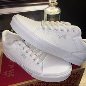 Vans All-White Leather Low-Top Sneakers