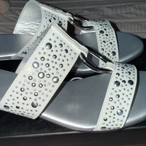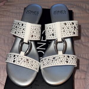 Jones New York Silver and White Embellished Sandals