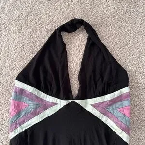 Vntg Bebe Halterneck Black Dress Satin Accents Size M Asymmetrical Babydoll Y2K